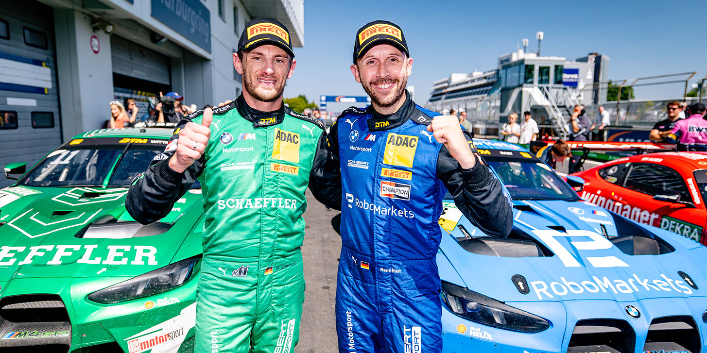 Nürburgring. Perfektes Rennen und ein rundes Jubiläum: René Rast (Bregenz/Schubert Motorsport) feierte am Sonntag auf dem Nürburgring nach einer abgeklärten Vorstellung den 30. Sieg in seiner DTM-Karriere. Nach 38 Runden wurde der dreimalige Champion mit einem Vorsprung von knapp acht Sekunden als Erster abgewunken. „So ein dominantes Rennen habe ich nicht erwartet. Ich konnte aber schon in der Einführungsrunde spüren, dass sich das Fahrzeug sehr gut anfühlt. Den 30. Sieg meiner Karriere in der DTM geholt zu haben, bedeutet mir unglaublich viel. Als ich 2017 meine DTM-Karriere begonnen habe, war so eine Zahl für mich unvorstellbar“, sagte Rast, der auf dem Eifelkurs zum vierten Mal erfolgreich war. Sein Teamkollege Marco Wittmann (Fürth) machte im BMW M4 GT3 Evo den Doppelsieg von Schubert Motorsport perfekt. Lucas Auer (A/Mercedes-AMG Team Landgraf) übernahm mit Platz drei wieder die Tabellenführung vor Jack Aitken (GB/Emil Frey Racing), der nach einem unverschuldeten Kontakt mit einem Konkurrenten als 16. nicht in die Punkte fuhr. Insgesamt 78.000 Besucher erlebten ein traumhaftes Motorsportwochenende mit packenden Rennen und drei Tagen Sonnenschein.