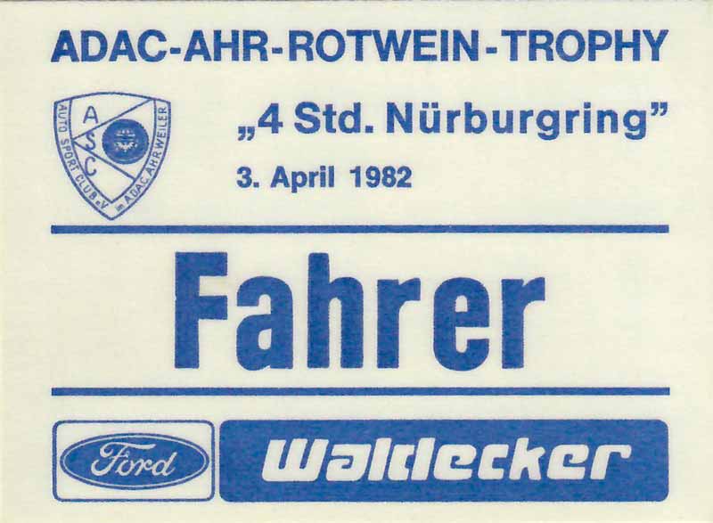 VLN 1. Lauf 1982 "ADAC-Ahr-Rotwein-Trophy"