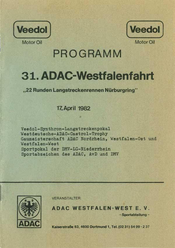 VLN 2. Lauf 1982 "31. ADAC-Westfalenfahrt"