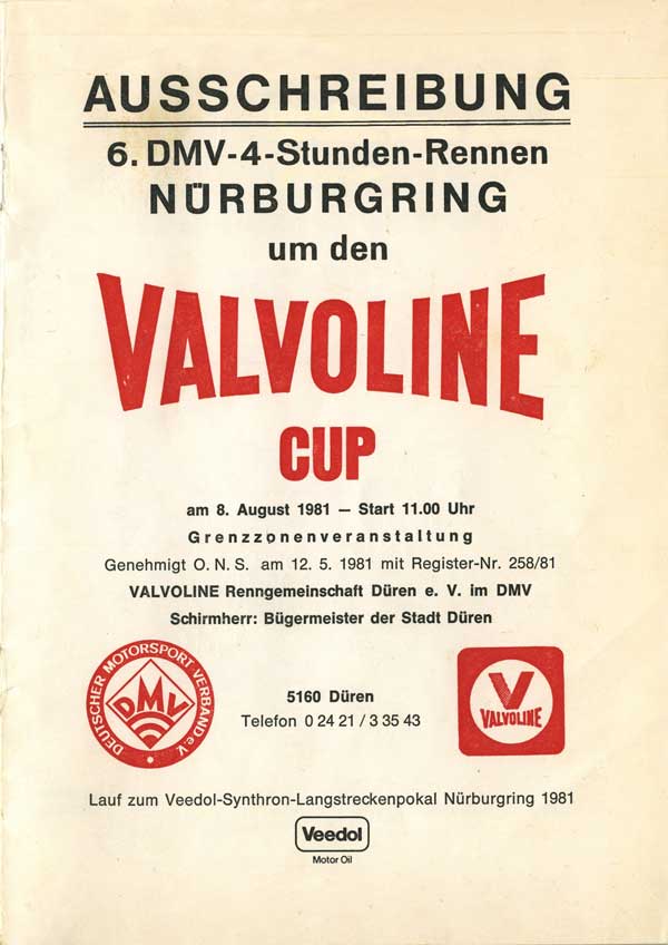 - 6. DMV-4-Stunden-Rennen "Um den Valvoline Cup 1981"