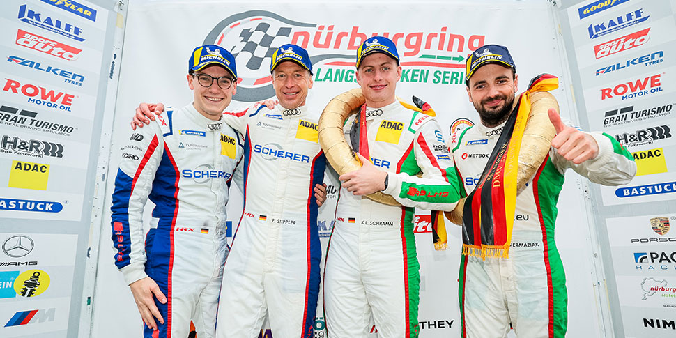 Nach 4:00:21,803 Stunden wurden Giermaziak und Schramm im Audi R8 LMS GT3 EVO II als Sieger abgewinkt. Mit einem Rückstand von 1:34,847 Minuten belegten Vincent Kolb und Frank Stippler im Schwesterfahrzeug Platz zwei. Dass die beiden Audi-Duos in dieser Konstellation zum dritten Mal in Folge jubeln durften, dafür war auch ein technisches Problem am BMW M4 GT3 von Walkenhorst Motorsport verantwortlich. Rund eine Stunde vor Rennende steuerte Christian Krognes zum letzten planmäßigen Stopp in Führung liegend die Box an. Aufgrund von Problemen an der Tankanlage des BMW M4 GT3 konnte nicht die geplante Menge Kraftstoff nachgefüllt werden und die Standzeit dauerte mehr als eine Minute länger als vorgesehen. Zu allem Überfluss musste der Norweger zu einem erneuten Tankstopp die Box kommen. „Das ist uns noch nie passiert und wir haben noch keine Idee, wo das Problem gelegen hat“, erklärte Krognes. „Bis dahin lief unser Auto gut und wir waren eindeutig auf Siegkurs.“ Ein kleiner Trost: Krognes fuhr in 7:49,578 Minuten einen neuen Rundenrekord im Rennen.