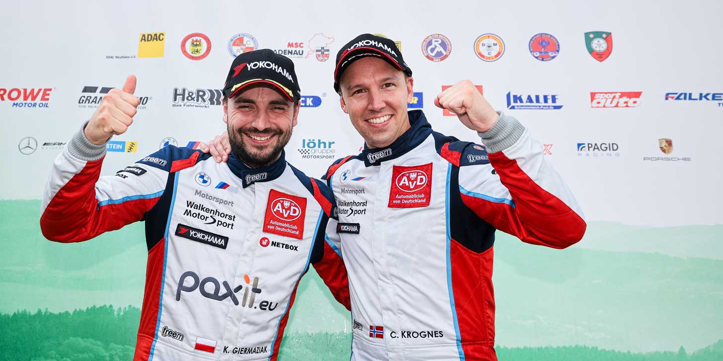 Die Sieger des 46. RCM DMV Grenzlandrennens heißen Jakub ‚Kuba‘ Giermaziak und Christian Krognes. Im BMW M4 GT3 von Walkenhorst Motorsport setzte sich das Duo im vierten Rennen der Nürburgring Langstrecken-Serie mit einem Vorsprung von 2:04,759 Minuten gegen Björn Grossmann, Jonathan Hirschi und Luca Ludwig im Ferrari 296 GT3 der Schweizer Mannschaft octane126 durch. Für das Team aus Melle ist es bereits der zweite Saisonsieg und BMW knüpft im zweiten Saisondrittel nahtlos an die Erfolge der ersten drei Veranstaltungen an. Vier NLS-Renne sind absolviert, viermal siegte BMW. Den Markenmix an der Spitze von NLS4 komplettierten bei strahlendem Sonnenschein in der Eifel Maxime Dumarey und Mike David Ortmann, die den ersten Podestplatz für den Aston Martin Vantage GT3 von PROsport-Racing feierten. Auf den weiteren Positionen wurde der Audi R8 LMS GT3 EVO II von Scherer Sport PHX abgewinkt, der schnellste Porsche war auf Rang fünf der Cup-Elfer des Team Mathol Racing e.V.