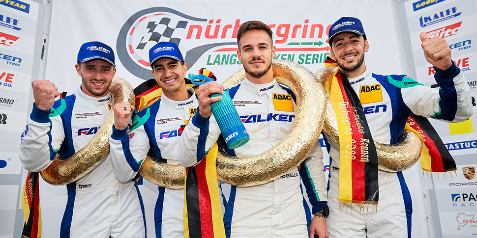 Premiere geglückt! Die erste Ausgabe der 12h Nürburgring war auf und abseits der Rennstrecke ein echtes Highlight. Das Rennen besaß alle Elemente, die es für einen guten Eifelkrimi braucht: Ein echter Reifenpoker bei wechselhaften Bedingungen am Samstag, Nordschleifen-Romantik in den Abendstunden, der Restart als zusätzliches Spannungselement, Dramatik im Kampf um den Sieg und am Schluss ein Happyend mit strahlenden Gewinnern. Die erfolgreichen Hauptdarsteller waren nach zweimal sechs Stunden Renndistanz Joel Eriksson, Jaxon Evans, Sven Müller und Alessio Picariello. Sie brachten den Porsche 911 GT3 R von Falken Motorsports nach 79 hartumkämpften Runden durch die Grüne Hölle auf Platz eins ins Ziel.