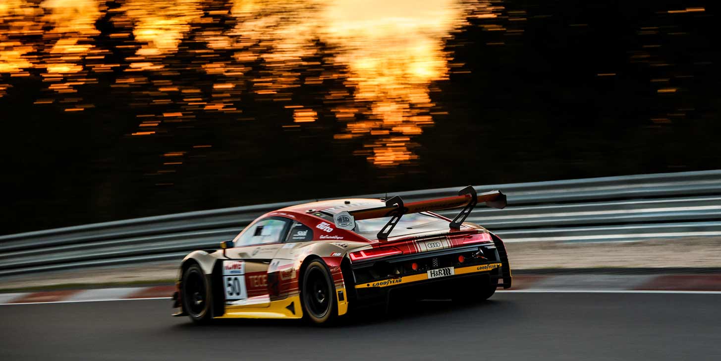 Die Witterungsbedingungen machten Rennen sechs der NLS gleich mehrfach zu einer großen Herausforderung. Nach tiefen Temperaturen im Zeittraining folgte leichter Regen in der Startaufstellung und noch ehe das Rennen begonnen hatte, wurde es zur Pokerpartie. Die meisten Teams gingen auf Nummer sicher und setzten in der Startphase auf Regenreifen. Nach fünf Runden war die Strecke genug abgetrocknet, um auf Slicks zu wechseln. Dies taten auch die beiden Scherer-Audi, die so den ‚kurzen‘ Stint vorzogen. Nach zweieinhalb Stunden setzte stellweise erneut Regen ein. Auch davon ließen sich die beiden Audi-Teams nicht beeindrucken und fuhren den Sieg im spektakulären Paarflug souverän nach Hause. Am Ende jubelte das Team im grünen Audi R8 – Giermaziak, Schramm und Engstler – bei der Siegerehrung ganz oben auf dem Podest. Giermaziak bereits zum zweiten Mal in dieser Saison als Gesamtsieger. Groß war die Freude auch bei Engstler, der sein erstes Nordschleifen-Rennen mit einem GT3-Fahrzeug mit dem Sieg krönte. „Wenn mir heute morgen jemand erzählt hätte, dass ich am Ende des Tages ganz oben stehe, hätte ich ihn für verrückt erklärt“, sagte Engstler. „Mein Ziel war es, auf der Nordschleife Kilometer zu sammeln, das Auto ganz zu lassen und kein Risiko zu gehen. Als ich im Regen mit Slicks unterwegs war, hat mir das Team sehr geholfen. Wir wussten immer, wo es nass ist und wo trocken. So konnte ich mich immer auf die Gegebenheiten einstellen.“ Auch Kolb war mit seinem dritten Podestrang in Folge zufrieden: „Im dritten Stint war ich im Regen unterwegs. Hier galt es, vor allem keine Fehler zu machen. Insgesamt hatte ich heute erneut viel Spaß und der Doppelsieg für Phoenix ist ein fantastisches Ergebnis.“