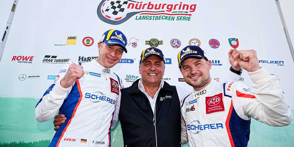 Nach einem packenden Finale stehen die Meister der Nürburgring Langstrecken-Serie 2023 fest. Daniel Zils, Oskar Sandberg und Philipp Leisen fuhren im BMW 330i des Adrenalin Motorsport Team Motec in der Klasse VT2-R+4WD zum neunten Sieg im neunten Rennen. Im Fernduell mit dem Fahrer-Trio von SRS Sorg Rennsport machten Zils, Sandberg und Leisen so ihren Triumph perfekt. Für Adrenalin Motorsport ist es der sechste Titel in Folge. Leisen sicherte sich seine insgesamt vierte Meisterschaft, Zils und Sandberg verteidigten ihren Titel aus dem Vorjahr und kamen zum zweiten Mal zu Meisterehren. Der Sieg beim 47. PAGID Racing DMV Münsterlandpokal ging an Frank Stippler und Christopher Mies im Audi R8 LMS GT3 EVO II. Das Duo von Scherer Sport PHX schenkte damit Ernst Moser, Teamgründer des Vorgänger-Rennstalls Phoenix Racing, zu seinem buchstäblich letzten Einsatz an der Boxenmauer einen Sieg.