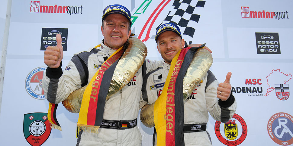 Viele Klassensiege beim 38. RCM DMV Grenzlandrennen waren hart umkämpft. So betrug der Vorsprung des Porsche Cayman S von Mathol Racing auf den zweitplatzierten 911er von aesthetic racing in der Klasse V6 gerade einmal 3,326 Sekunden. Ähnlich eng ging es in der Klasse V3 zu, in der der von Bonk-Motorsport eingesetzte Peugeot 306 S16 nur 5,035 Sekunden vor den Verfolgern ins Ziel kam. Und auch die beiden Altmeister Heinz-Otto und Jürgen Fritzsche konnten sich zusammen mit dem Finnen Hannu Luostarinen nicht auf ihrem Vorsprung ausruhen. Das Trio unter der Bewerbung TI-Tarvike Racing wurde 6,229 Sekunden vor dem Cup-Kollegen von Lubner-Motorsport abgewinkt. Heinz-Otto Fritzsche fuhr so zu seinem 80. Klassensieg. Damit hat er in der Bestenliste seit 1990 VLN-Urgestein Andreas Schall eingeholt. Und dessen Sohn Ralf, der die Statistik anführt, hat seinerseits nur noch zwei Klassensiege Vorsprung.