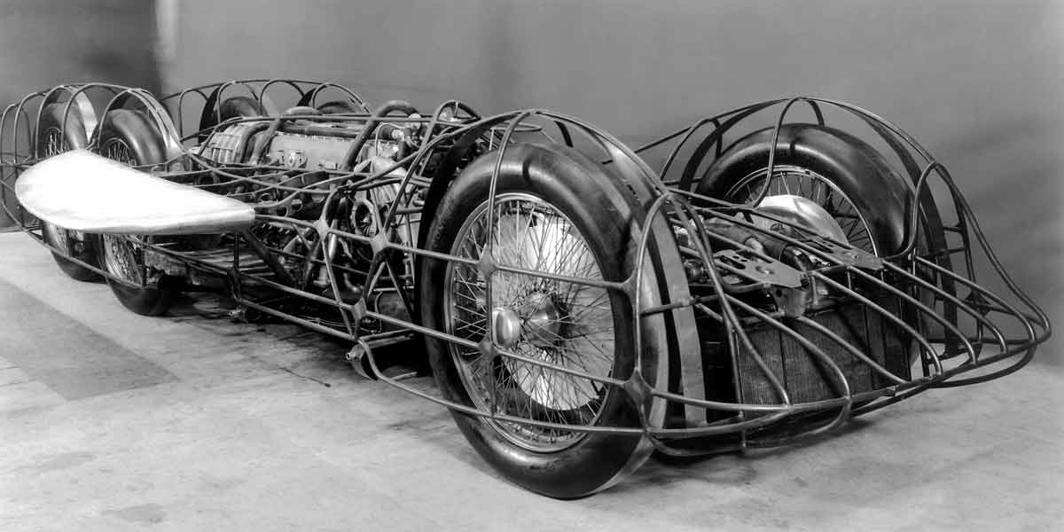 Die Aufnahmen für die nicht fest mit der Karosserie verbundenen Seitenflossen sind am Gitterrohrrahmen angebracht. Diese Flossen erinnern an die Tragflächen eines Flugzeugs, haben aber das umgekehrte Profil. So erzeugen sie Abtrieb und vergrößern damit den Anpressdruck der Antriebsräder auf der Fahrbahn. Rund 900 Kilogramm Abtrieb gelten als optimales Maß für die vorgesehenen Rekordfahrten. Bei der 1940 erfolgten Stilllegung befindet sich die Karosserie im vorläufigen Zustand eines noch nicht vollendeten Projekts.