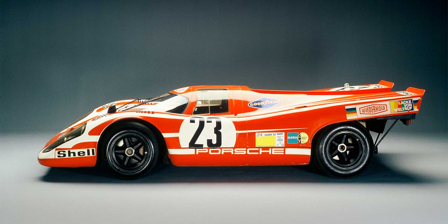 Wie im Vorjahr wurde auch die Saison 1971 vom Typ 917 dominiert, so dass die Markenweltmeisterschaft mit acht von zehn Rennsiegen erneut an Porsche ging. Und erneut siegte ein Porsche 917 bei den 24 Stunden von Le Mans – diesmal mit Gijs van Lennep und Dr. Helmut Marko, die mit einer Durchschnittsgeschwindigkeit von 222 km/h und 5.335 gefahrenen Kilometern den bis heute gültigen Streckenrekord halten. Eine Besonderheit ihres optisch durch seine „Haifischflossen“ gekennzeichneten 917 Kurzheck war der aus Magnesium gefertigte Gitterrohrrahmen. Einen weiteren Rekord erzielte 1971 ein 917 Langheck-Coupé (Bild unten rechts): Auf der Mulsanne-Geraden wurde der Rennwagen mit der Startnummer 21 mit einer Höchstgeschwindigkeit von 387 Stundenkilometern gemessen. Große Bekanntheit erlangte auch ein weiterer Le Mans-Teilnehmer: Der Porsche 917/20 war eine Mischung aus Kurz- und Langheck und fiel durch seine breiten Proportionen auf. Obwohl der rosa lackierte Rennwagen mit dem Spitznamen „Die Sau“ nach der Hälfte der Distanz ausfiel, machte ihn seine ausgefallene Lackierung zu einem der bekanntesten Porsche überhaupt.