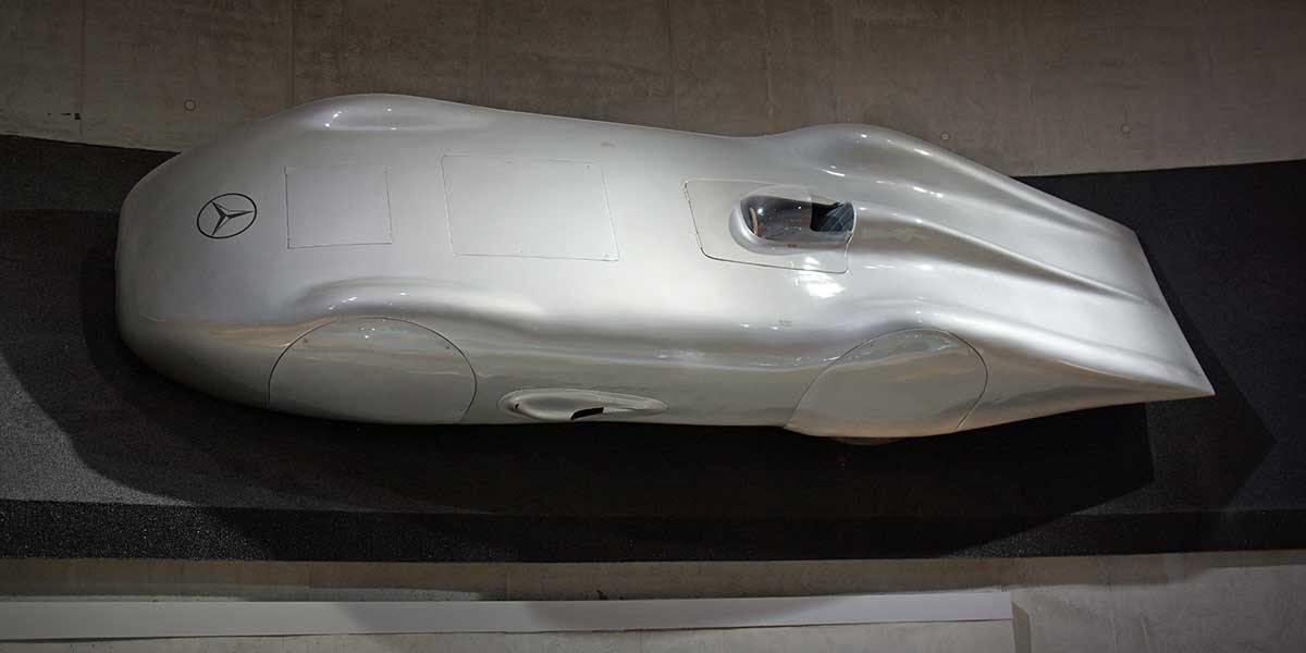 Ein längeres und stärker angehobenes Heck reduziert den Auftrieb an der Hinterachse. Außerdem wird der Querschnitt des Wagens stärker abgerundet, was die Seitenwindempfindlichkeit reduziert. Schließlich entsteht eine runde, dem Grundriss und Querschnitt eines Tropfens nachempfundene Cockpitverglasung. Bisher hatte Rennfahrer Rudolf Caracciola, Europameister der Jahre 1935 und 1937, eine solche Scheibe wegen des Risikos der Sichtverzerrung ablehnt. Nun findet Mercedes-Benz gemeinsam mit einem Zulieferer eine optisch wie aerodynamisch befriedigende Lösung. Die konsequente Stromlinienform des Fahrzeugs wird zudem durch die verkleideten Radausschnitte betont.